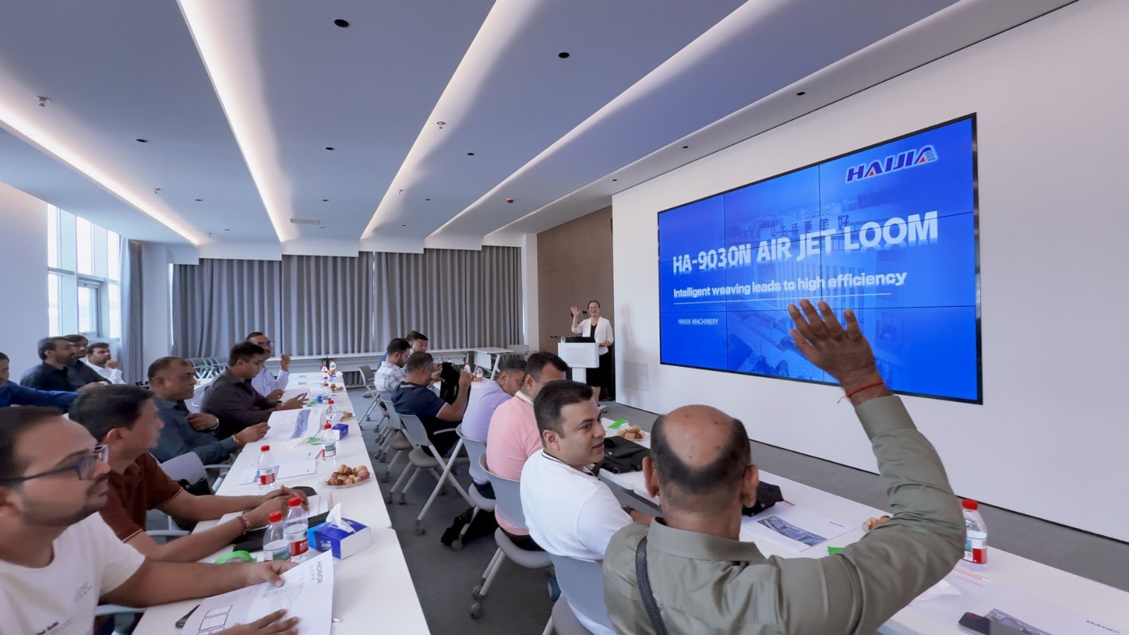 2025年8月28日,24家印度紡織企業(yè)客戶代表走進(jìn)海佳集團(tuán),開啟了一場深度的噴氣織機(jī)體驗(yàn)之旅。